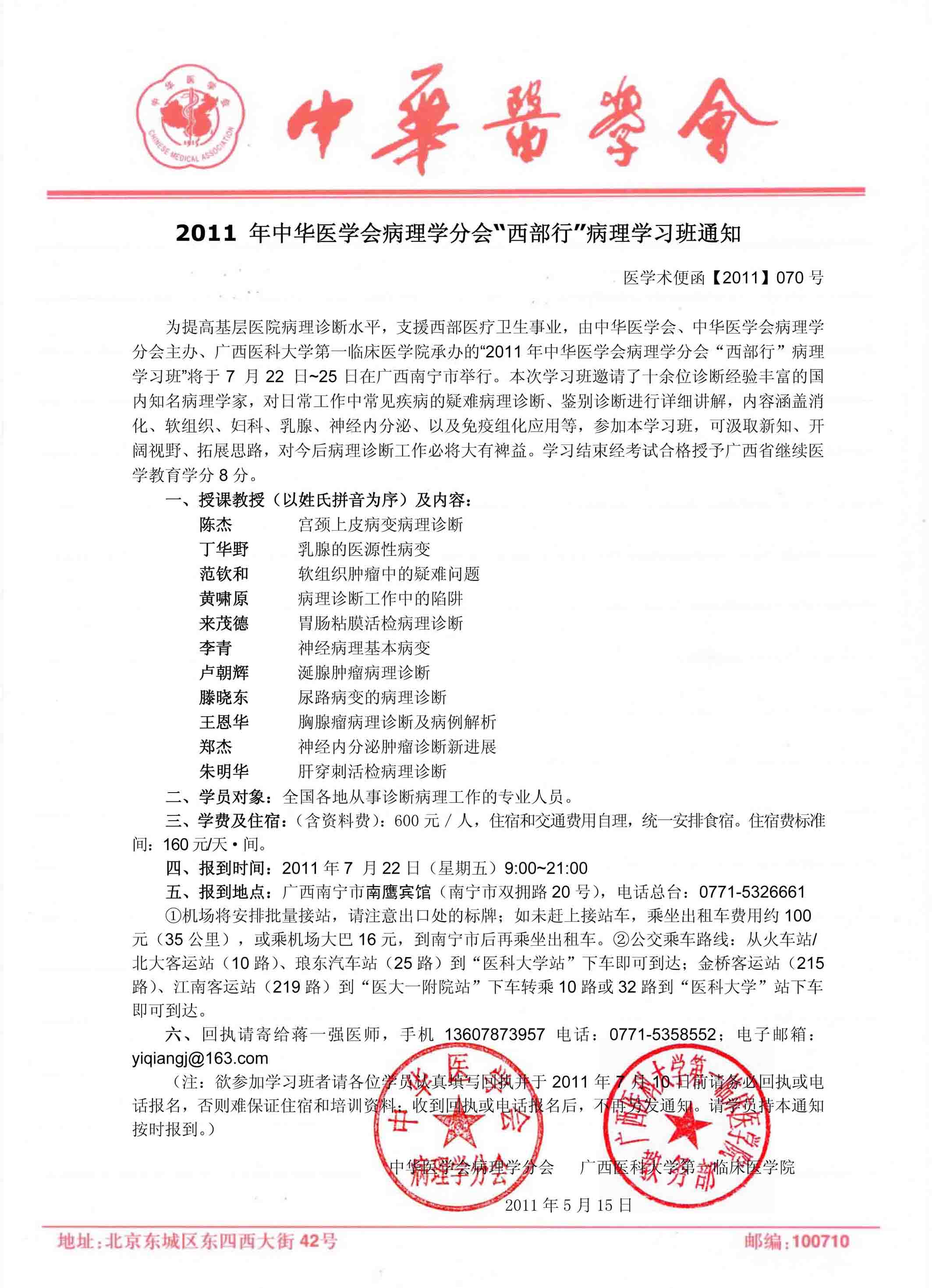2011年西部行病理学习班通知