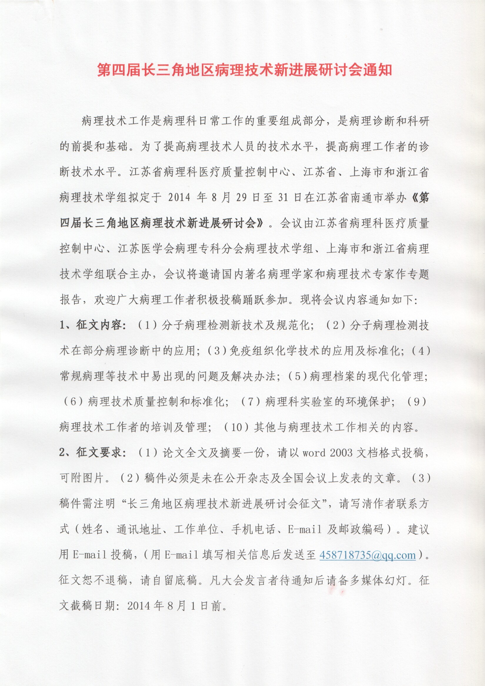 第四届长三角病理技术会议通知